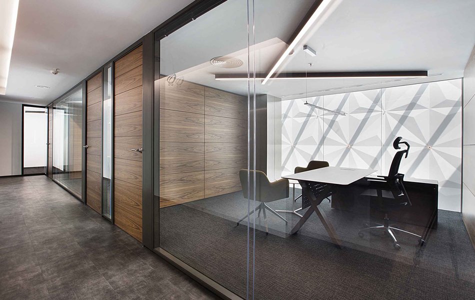 Maksimum şeffaflık için düşey profilsiz olarak tasarlanan bu sistem, estetik görünümünün yanı sıra yüksek akustik performans ve izolasyon sağlar. Gerektiğinde dolu modüllerle entegre edilerek fonksiyonel çözümler sunar.